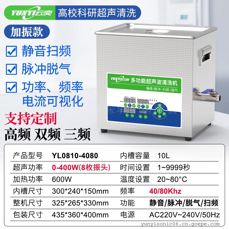 云奕超声波清洗机双频40/80KHZ功率可调实验室用YL0810-4080 深圳工厂 支持加工定制